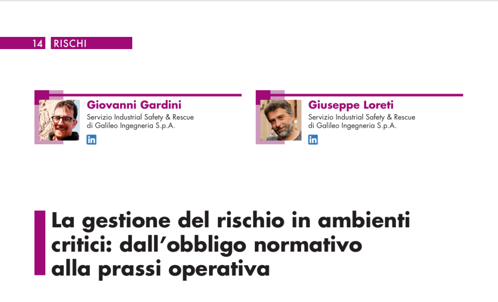La non corretta o mancata valutazione di tali rischi già nella fase di progettazione delle strutture e degli impianti connessi a tali processi può compromettere l’efficacia delle misure di prevenzione previste per l’attività, e comportare gravi difficoltà nel recupero dei lavoratori in caso di emergenza.
